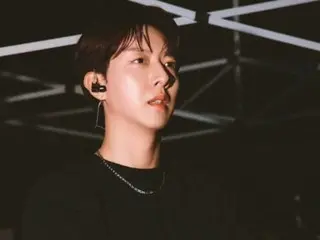 "Hãy xem trên Blog NAVER nhé", anh viết, kèm theo một bức ảnh. Bức ảnh cho thấy CNBLUE trong trang phục tối màu.
