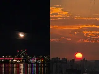 Cảnh mặt trời từ từ lặn xuống đường chân trời và những đám mây đỏ hòa quyện vào nhau như một bài thơ cùng bức ảnh trăng sáng ngày hôm trước mang đến cho người hâm mộ cảm giác phấn khích mới.